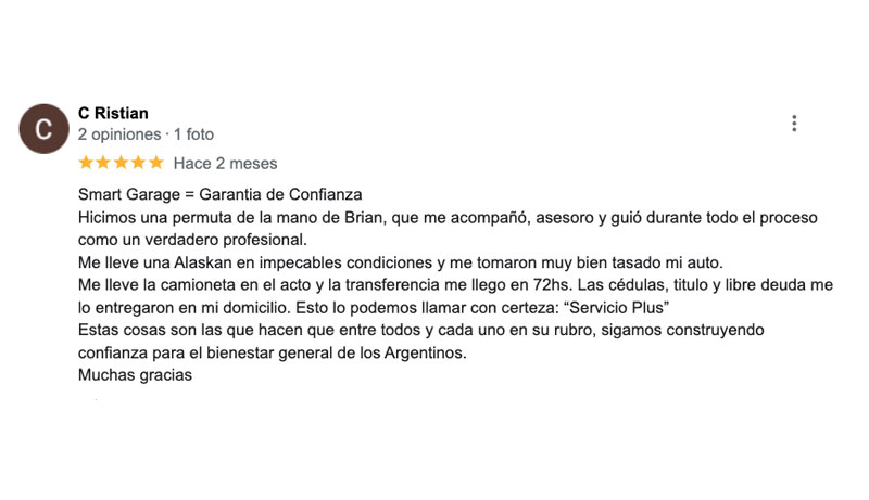 Nadie mejor que las personas que ya nos eligieronpara contarte cómo es vivir la experiencia SMART Garage.