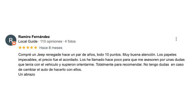 Sabemos que la experiencia de compra es un atributo más del auto que te vas a llevar. ¡Y que sea positiva es nuestro objetivo principal! Por eso hacemos todo al detalle: tanto las publicaciones en nuestras redes sociales y Mercado Libre, como al momento de mostrártelo, y por supuesto al entregártelo listo para que lo disfrutes.